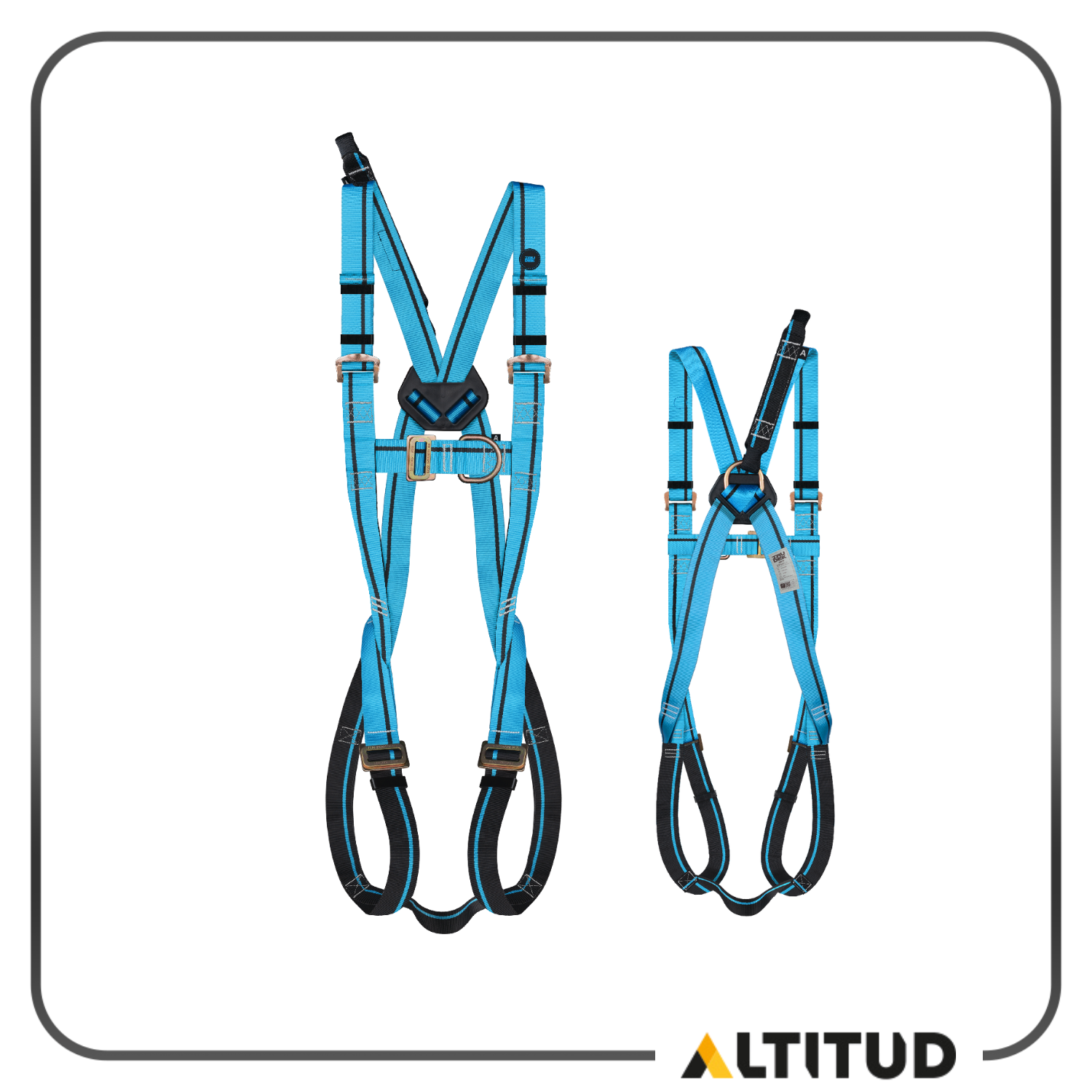 Arnés anticaídas ligero y de larga duración. Dispone de una anilla anticaídas dorsal con cinta de extensión y otra anilla anticaídas frontal. También incluye cintas regulables en pecho, hombros y pernera.