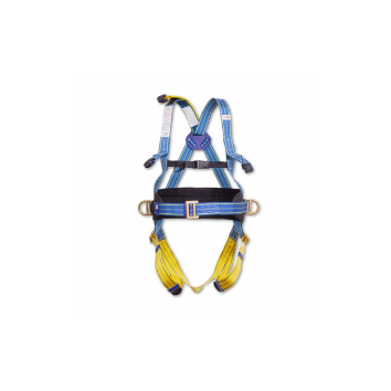 Arnés Con cintura anticaídas ligero y de larga duración. Dispone de una anilla anticaídas dorsal con cinta de extensión y dos anillas textiles anticaídas frontales. También incluye cintas regulables en pecho, hombros, cintura y pernera