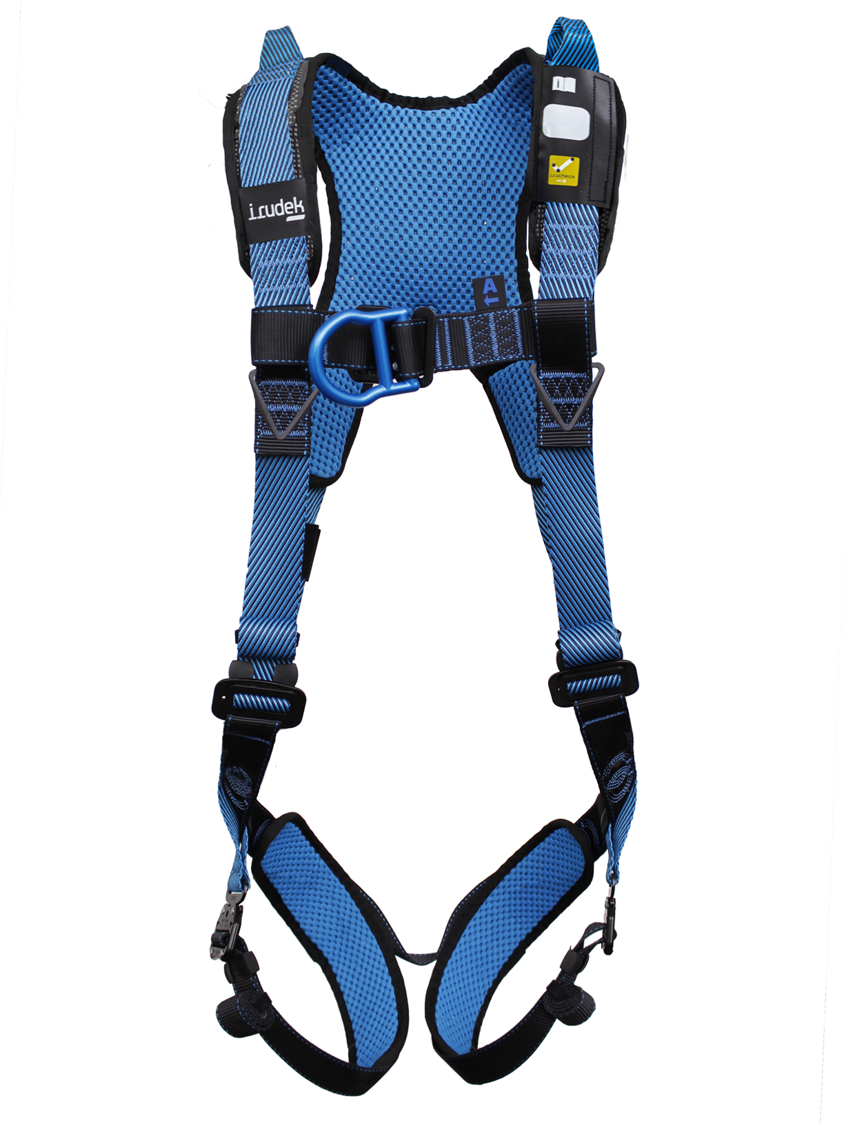 Arnés anticaídas premium ligero, dispone de una anilla anticaídas dorsal y otra anilla anticaídas frontal, ambas en color azul para una rápida detección Dispone de aros textiles en los hombros para poder realizar evacuaciones verticales junto con el accesorio Boomer.